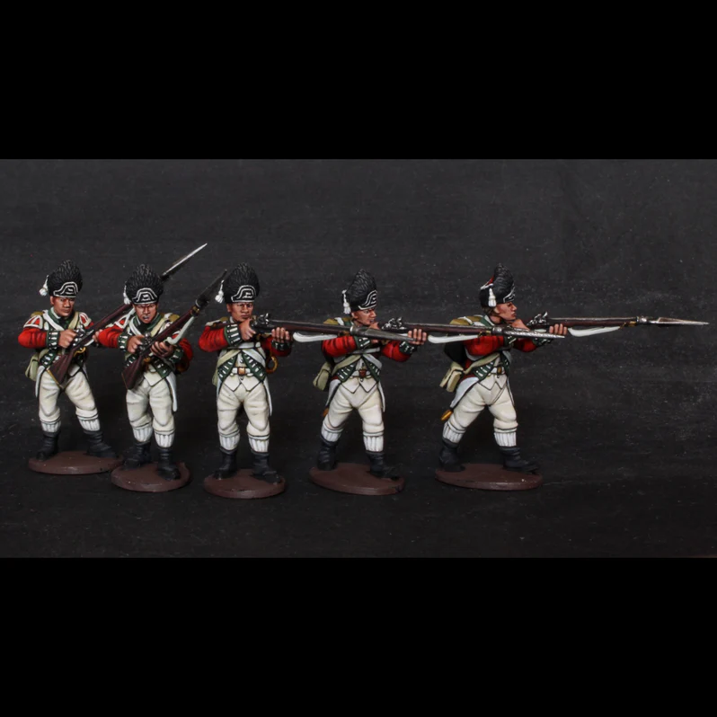 Zestaw ten zawiera wystarczającą liczbę części, aby zbudować 30 grenadierów w skali 28 mm. Są oni uzbrojeni w kultowy muszkiet Brown Bess i noszą charakterystyczne czapki z niedźwiedziej skóry, które sprawiają, że wydają się jeszcze wyżsi i groźniejsi. Zestaw zawiera kombinację póz do natarcia, strzelania i ładowania, idealnych do przedstawienia harcowników i żołnierzy w ogniu walki.
