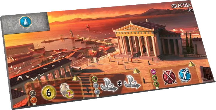 Dodatkowa karta cudu świata Syrakuzy. Dodatek nie posiadający karty do losowego wybrania cudu przed grą.