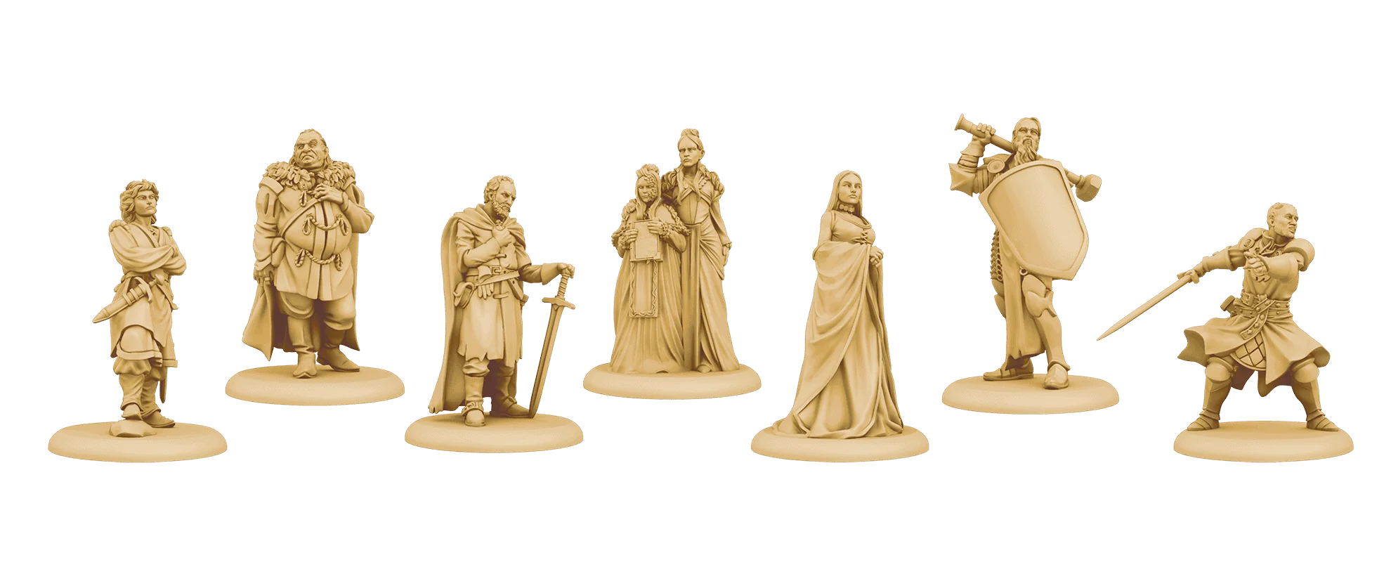 Zestaw Bohaterów Baratheonów rozszerza opcje dodatków stronników i dowódców graczy którzy zdecydowali się poprzeć Króla Stannisa. W pudełku znajduje się 7 nowych modeli, w tym alternatywna wersja Stannisa, słynna czerwona Kapłanka czy namiestnik króla – Sir Davos zwany również Cebulowym Rycerzem.