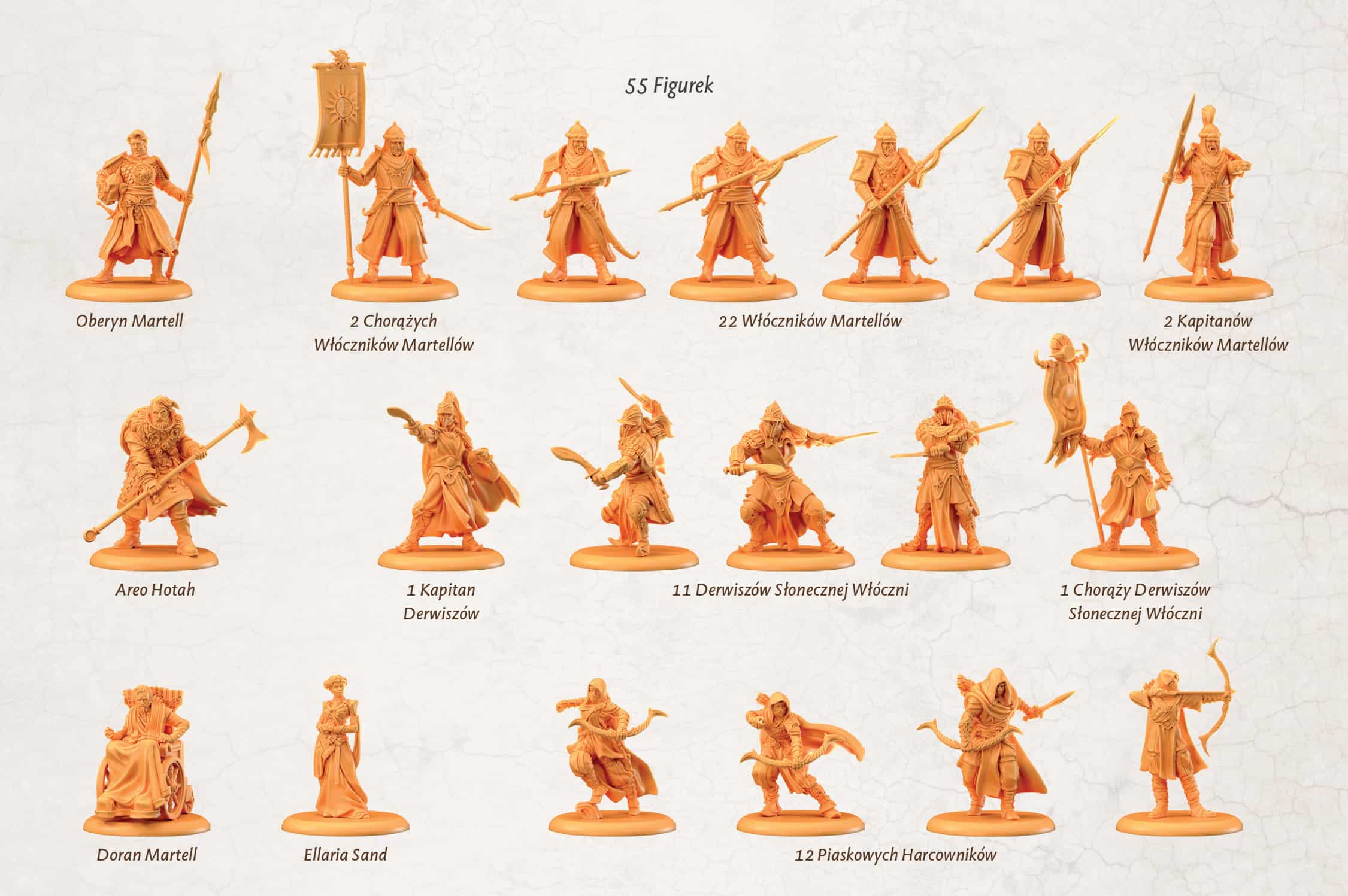 Południowym Westeros włada Ród Martell – maszerujące pod sztandarem Słonecznej Włóczni armie to jedne z najbardziej mobilnych wojsk w Wojnie Pięciu Królów. Ich doktryna bitewna jest prosta – uderzyć szybko i mocno, a następnie odskoczyć, by uniknąć kontrataku. Główny trzon tych sił stanowią Włócznicy i lekko uzbrojeni Harcownicy, podczas gdy Derwisze Słonecznej Włóczni pełnią rolę oddziałów uderzeniowych, wykorzystywanych do oskrzydlania i przygważdżania wroga. Prawdziwa potęga Rodu Martell tkwi jednak w jego przywództwie. Książę Doran przewodzi całemu rodowi ze Słonecznej Włóczni, ale na froncie wojskom rozkazy wydaje Książę Oberyn. Areo Hotah widział wiele bitew, w których o zwycięstwie decydowała jedynie niezłomna siła woli, a dzięki politycznym machinacjom Ellarii Sand wrogowie nie mogą zgadnąć, gdzie i kiedy Ród Martell uderzy następnym razem.