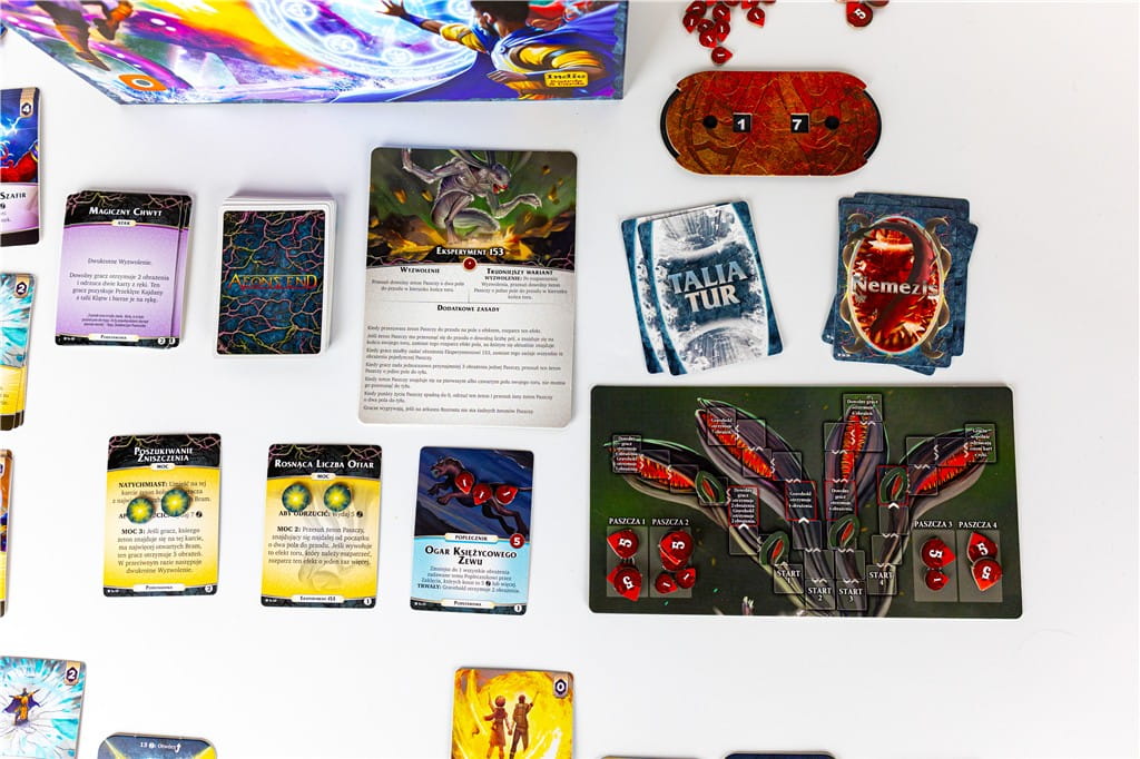 - Samodzielna gra - Aeon's End: Wygnańcy jest samodzielną odsłoną w linii. Zachowuje jednak pełną kompatybilność z pozostałymi odsłonami Aeon’s End. Uzupełnij swoją kolekcję i połącz Wygnańców z dowolnym pudełkiem!
