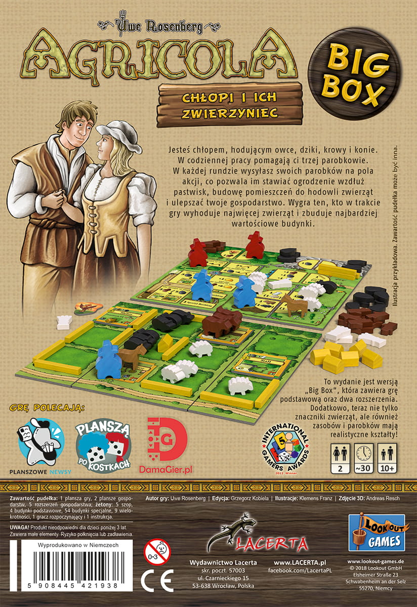 UWAGA! Agricola: Chłopi i ich zwierzyniec - Big Box jest samodzielną grą dla dwóch osób i nie wymaga żadnych elementów gry Agricola.