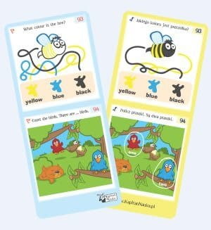 Uczenie się poprzez rozwiązywanie zagadek to bardzo skuteczna forma nauki dla najmłodszych, ponieważ wbudza ich ciekawość i daje mnóstwo radości. Dzięki nim dzieci nie tylko ćwiczą i utrwalają znane już słówka i zwroty, lecz także poznają nowe. Zagadki są zróżnicowane pod względem poziomu od prostszych po trudniejsze, więc poznawanie języka odbywa się stopniowo. Zabawne ilustracje wspomagają zapamiętywanie, a urozmaicone zadania nie pozwalają dzieciom się nudzić. Dla ułatwienia każda karta zawiera polecenie do zagadki w języku angielskim (awers) i polskim (rewers).