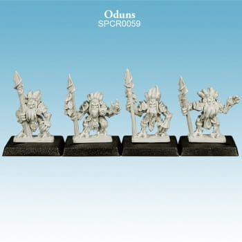 Zestaw zawiera 4 jednoczęściowe figurki żywiczne Oduns i 4 kwadratowe, plastikowe podstawy 20mm. Wymagają montażu, czyszczenia i malowania. Figurki są przeznaczone do gry Argatoria do armii Gaeldor.