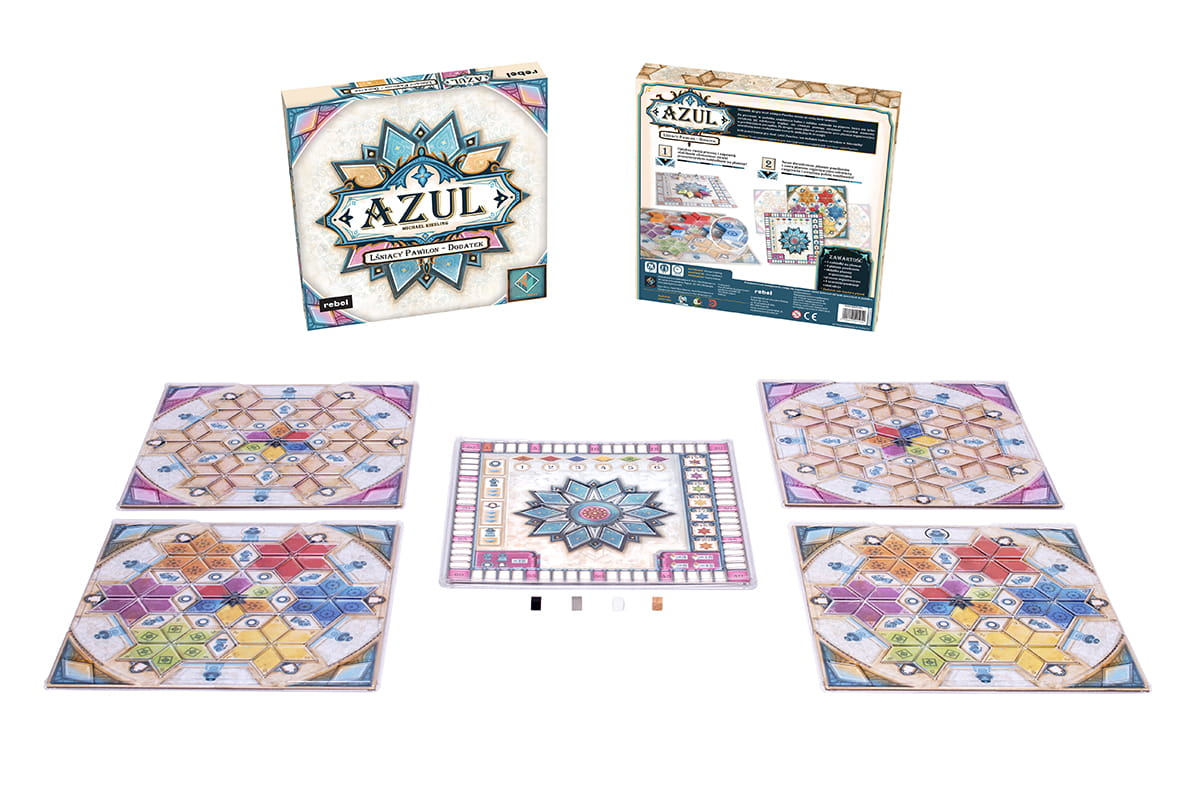 Denerwują Cię elementy przemieszczające się po planszach pawilonów? A może szukasz urozmaicenia rozgrywek i alternatywnych wzorów punktowania? W obu przypadkach Azul: Lśniący Pawilon jest rozwiązaniem idealnym! Ten dodatek dla gry Azul: Letni Pawilon zawiera planszę organizacyjną oraz nowe plansze pawilonów, które umożliwią Wam realizowanie unikalnych strategii. W zestawie są też praktyczne, plastikowe nakładki na plansze, które nie tylko podniosą estetykę gry, ale również pomogą utrzymać wszystkie elementy w perfekcyjnym porządku.