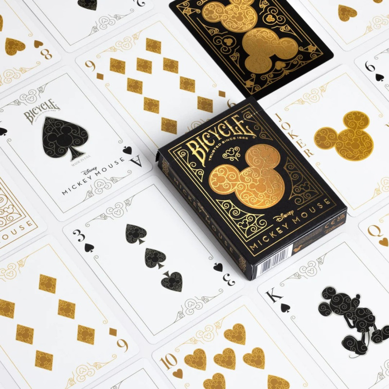 Talia Disney Black & Gold Mickey Mouse to połączenie ponadczasowej klasyki z nowoczesną elegancją, które zachwyci zarówno kolekcjonerów, jak i miłośników wyjątkowego designu. Stworzona przez renomowaną markę Bicycle z okazji 100-lecia Disneya, talia ta celebruje nie tylko jedną z najbardziej rozpoznawalnych postaci popkultury, ale także kunszt wykonania i wyrafinowaną estetykę.