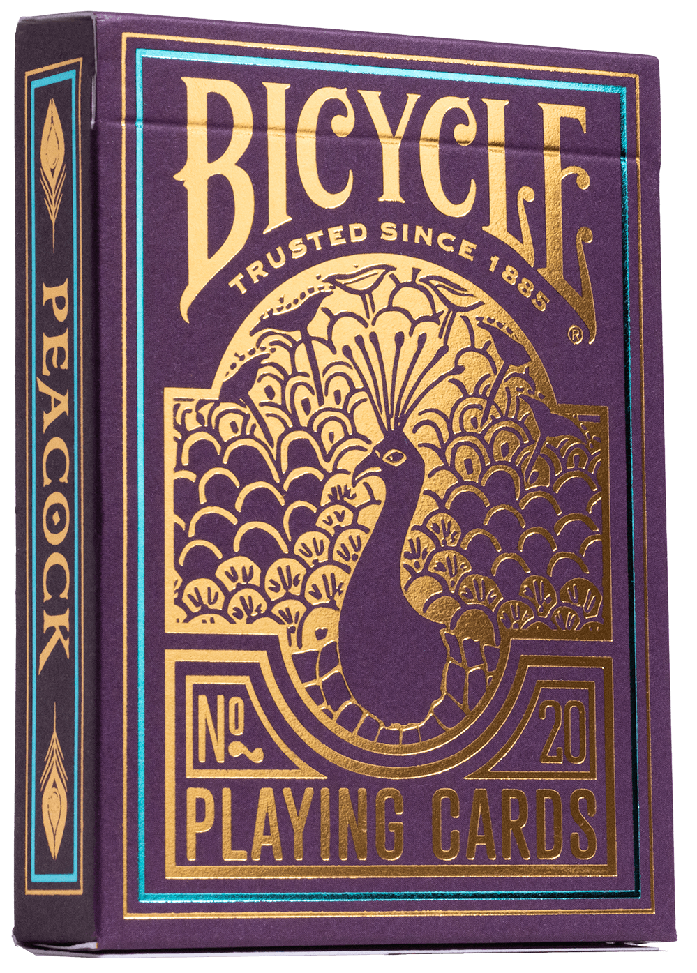 Bicycle: Purple Peacock to talia kart na miarę króla! Ten oto historyczny projekt został na nowo opracowany przy mistrzów z Bicycle przy użyciu nowej technologii zimnej folii, podkreślący królewskie fiolety i głębokie błękity oraz eleganckie złote akcenty. Będziesz olśniony wspaniałymi detalami tej wspaniałej nowej talii! Grzbiety i awersy kart zawierają błyszczące foliowe akcenty, w tym kolorowe foliowe karty dworskie i wspaniałe złote paski!