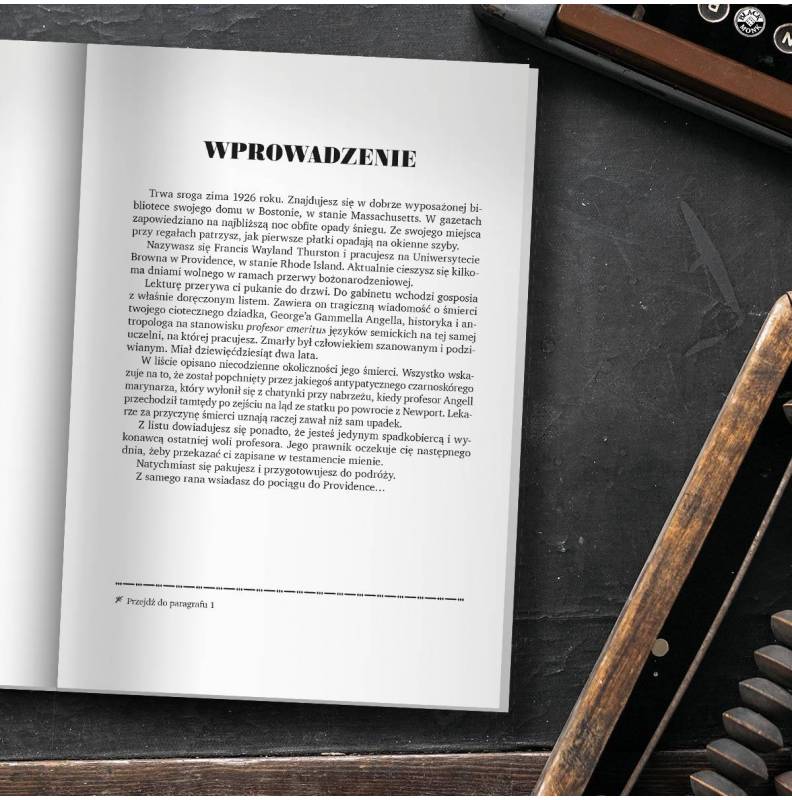 Trwa sroga zima 1926 roku. Otrzymałeś ponure wieści o śmierci twojego ciotecznego dziadka, George’a Gammella Angella, historyka i antropologa na stanowisku profesor emeritus języków semickich na Uniwersytecie Browna. Niecodzienne okoliczności jego śmierci, wskazują, że zaangażował się w wyjątkowo niebezpieczne badania. Jako spadkobierca i wykonawca ostatniej woli profesora ruszasz do Providence. Czy znajdziesz w sercu dość odwagi, by zmierzyć się z okropieństwami z otchłani czasu?