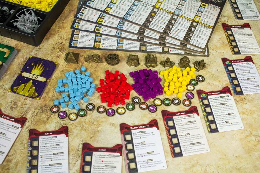 Clash of Cultures: Monumentalna Edycja to porażająca w swym ogromie cywilizacyjna gra planszowa dla 2-4 graczy. Obok zaktualizowanej wersji gry z 2012 roku, w pudełku znajdziemy także dodatek, Cywilizacje. Łącznie to kilkadziesiąt żetonów, ponad setka kart i aż kilkaset figurek!