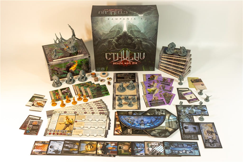 Kampania 4 to rozszerzenie do gry Cthulhu: Death May Die, które wprowadza sześć zupełnie nowych scenariuszy i jeszcze więcej koszmarów, w tym bezpośrednie starcie z Nyarlathotepem. W pudełku znajdziecie nowe postacie badaczy oraz przeciwników, którzy przeniosą Was do najdziwniejszych zakątków uniwersum Lovecrafta. Zestaw zawiera również 28 szczegółowych figurek, które urozmaicają rozgrywkę.