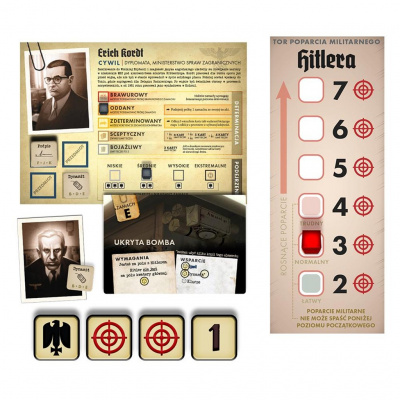 Twoim zadaniem będzie knucie intryg, zdobywanie niezbędnych zasobów i unikanie czujnego oka Gestapo. Rozgrywka opiera się na planowaniu i współpracy, a jej tempo wyznaczają kluczowe wydarzenia II Wojny Światowej. Każda decyzja może zbliżyć Cię do sukcesu… lub do aresztowania. Czy odważysz się podnieść rękę na tyrana?
