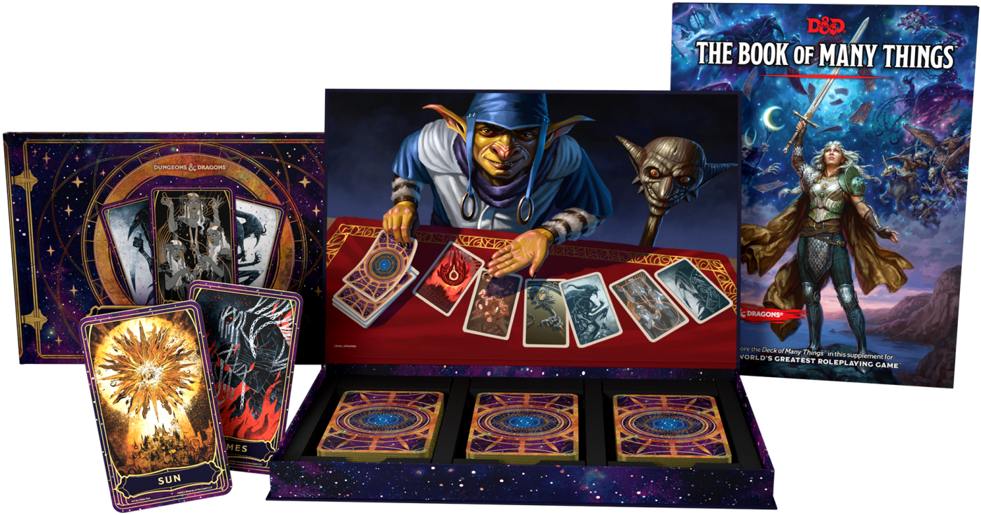 - The Book of Many Things (192-page hardcover) - A book for players and Dungeon Masters alike with content that can be dropped into any campaign, all thematically tied to The Deck of Many Things