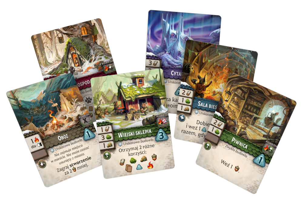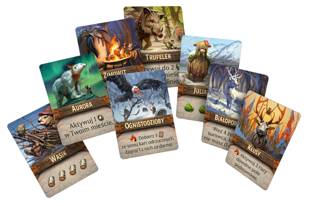 - Oprócz elementów charakterystycznych wyłącznie dla Srebrnoszronów gra wprowadza też 4 rodzaje nowych, uniwersalnych stworzeń! Jeśli masz wśród współgraczy fanów pandek, pingwinów, sokołów albo zajęcy, nie ma żadnych przeszkód, żeby używać ich podczas rozgrywek w klasyczne Everdell.