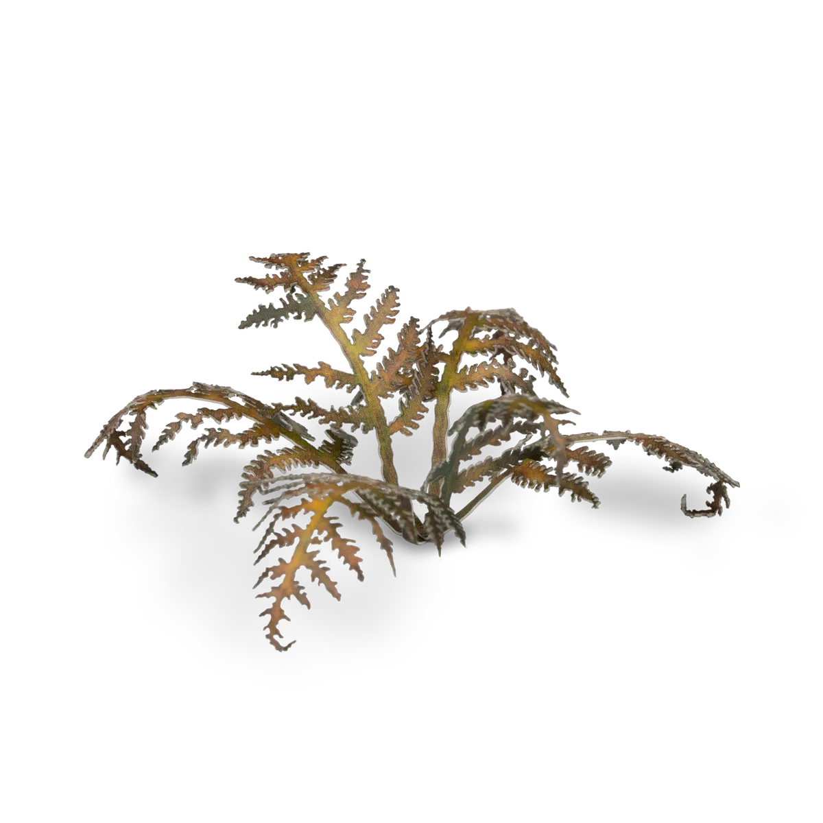 Ten arkusz zawiera 26 suchych liści paproci w różnych kolorach i rozmiarach, które można wykorzystać w modelach, figurach hobbystycznych i malowniczych dioramach.