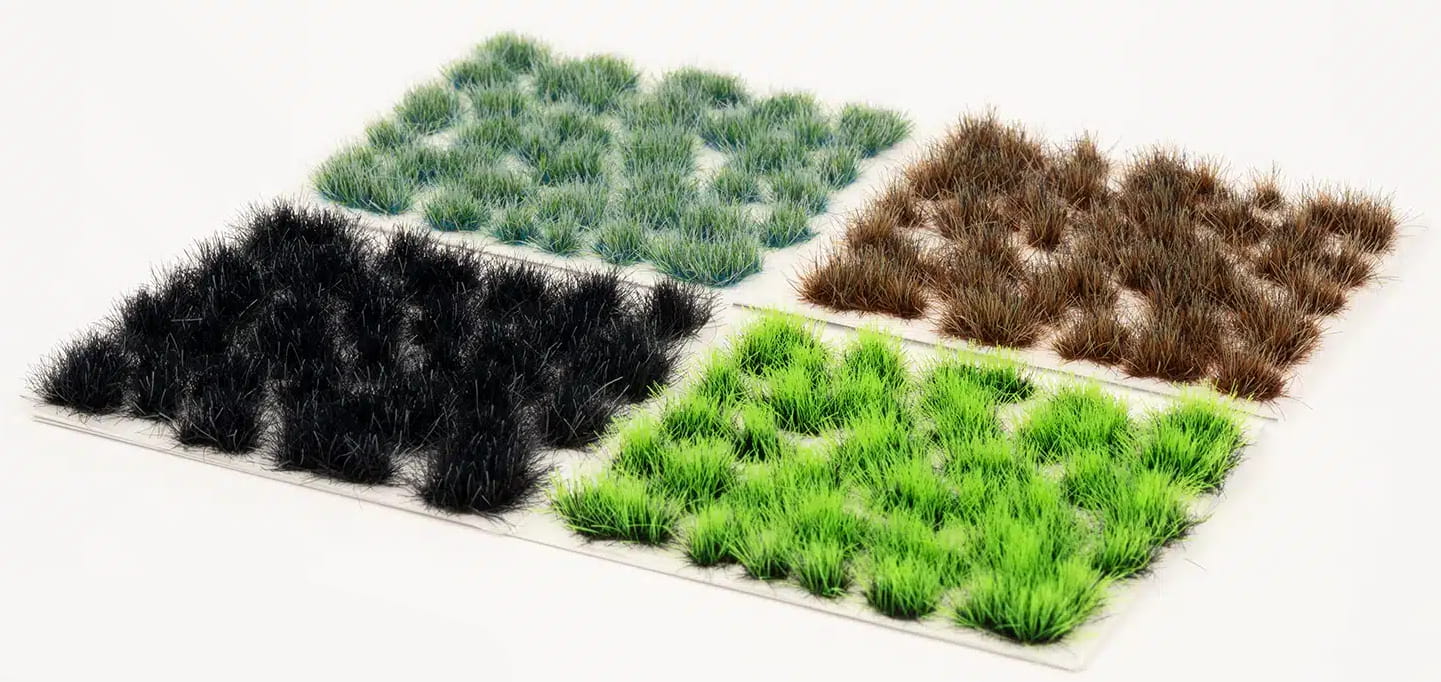 Miniaturowy zestaw Green Meadow zawiera 4 arkusze z kępkami o wielkości 6mm: