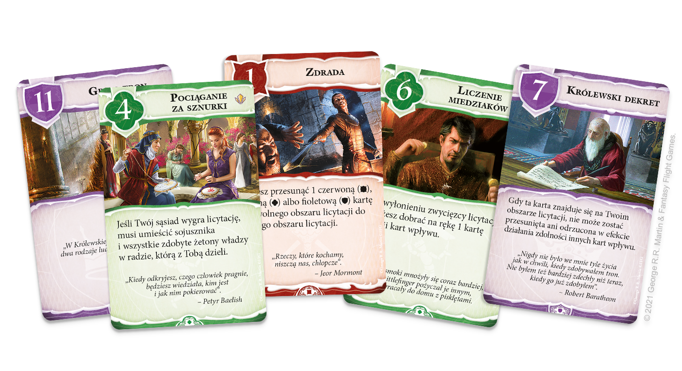Gra o Tron: Sojusze to dynamiczna gra karciana, w której wcielasz się w jednego z bohaterów „Pieśni lodu i ognia” George’a R.R. Martina. Zagrywaj karty wpływu i pozyskuj znanych z powieści sojuszników, nakłaniając ich, by do Ciebie odłączyli. Miej się jednak na baczności! Ci, którzy deklarują przyjaźń Tobie, mogą wchodzić w układy ze swoimi sąsiadami. W tym brutalnym świecie nawet najbliższy towarzysz może okazać się zdrajcą!