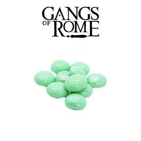 Opakowanie zawiera 10 szklanych kamyków w kolorze zielonym