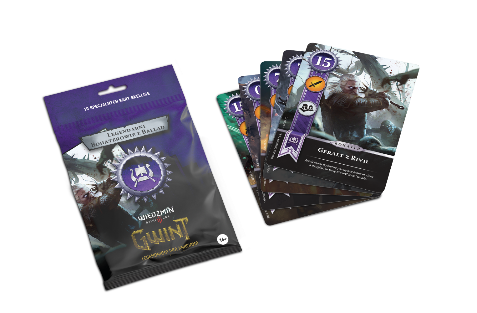 Cirilla, Geralt z Rivii, Triss Merigold, Yennefer z Vengerbergu i inni bohaterowie opowieści Jaskra zaprezentowani w całej swojej chwale! Gwint: Legendarni bohaterowie z ballad - Skellige zawiera zestaw 10 alternatywnych wersji kart, które możesz dołączyć do swojej talii.