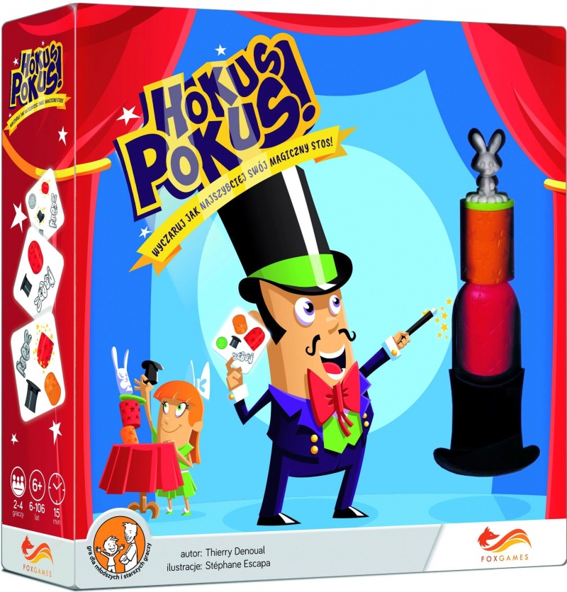 Szybkość, zręczność i precyzja zadecydują o sukcesie przestawienia. Hokus Pokus! daje mnóstwo zabawy, gdyż wszyscy grają jednocześnie, a ponadto ćwiczy zdolności manualne i cieszy oko pięknymi plastikowymi elementami.