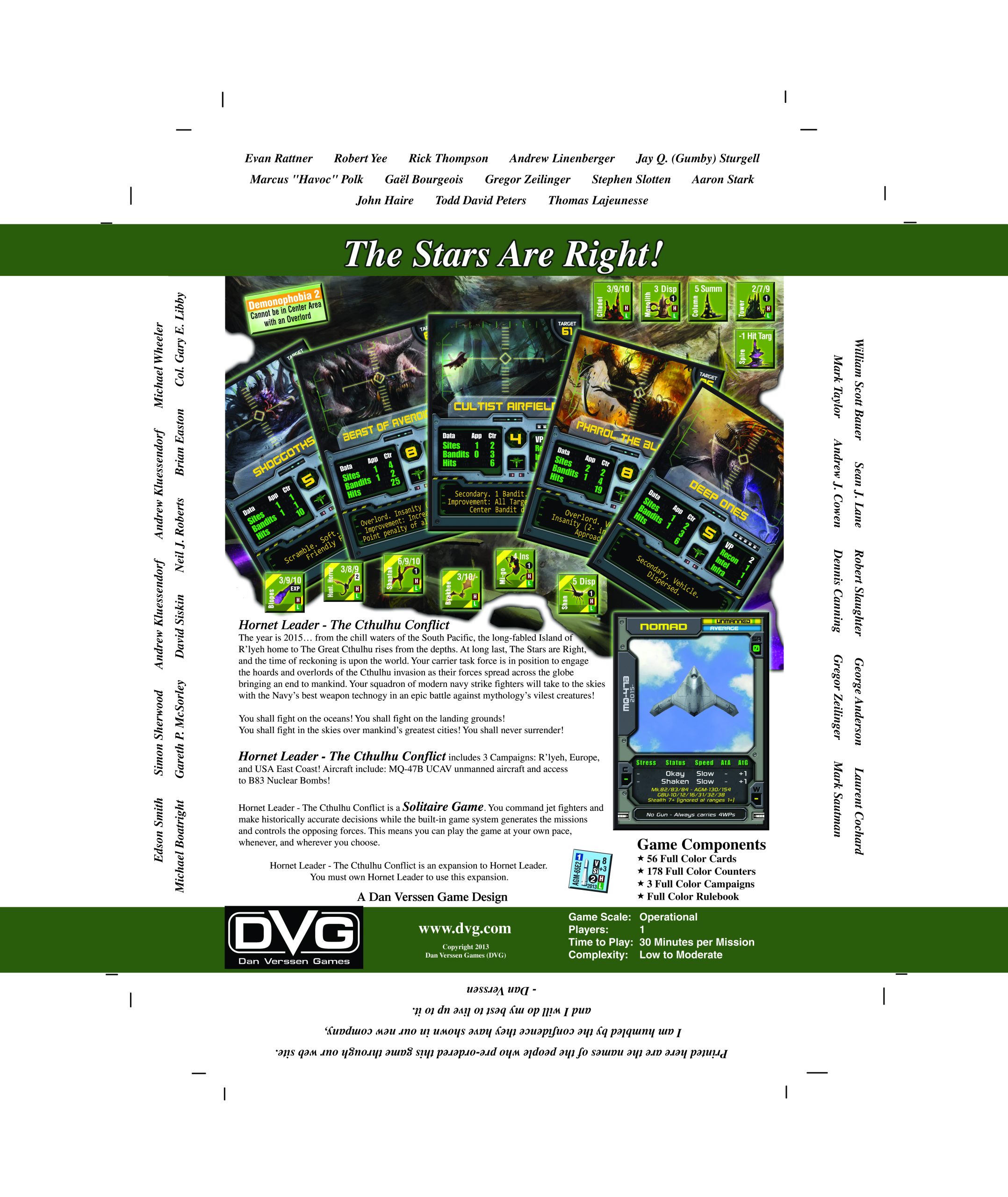 Hornet Leader - The Cthulhu Expansion is an expansion to Hornet Leader. Players choose their mission aircraft and prep them to best suit their needs. The right pilots and the right armaments are key to a succesful mission. When the mission starts the player places his aircraft on the tactical map and does his best to bypass or destroy the enemy defenses before striking the mission objective.