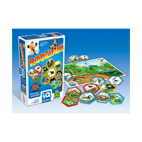 Każde zwierzątko ma mamę i tatę. Najpierw jest dzieckiem, potem rośnie, zmienia się i samo staje się mama lub tatą... Obrazki umieszczone w pudełku przedstawiają kolejne etapy rozwoju ośmiu gatunków zwierząt. Młodszym dzieciom proponujemy układankę, starszym- ciekawą, dynamiczna grę.