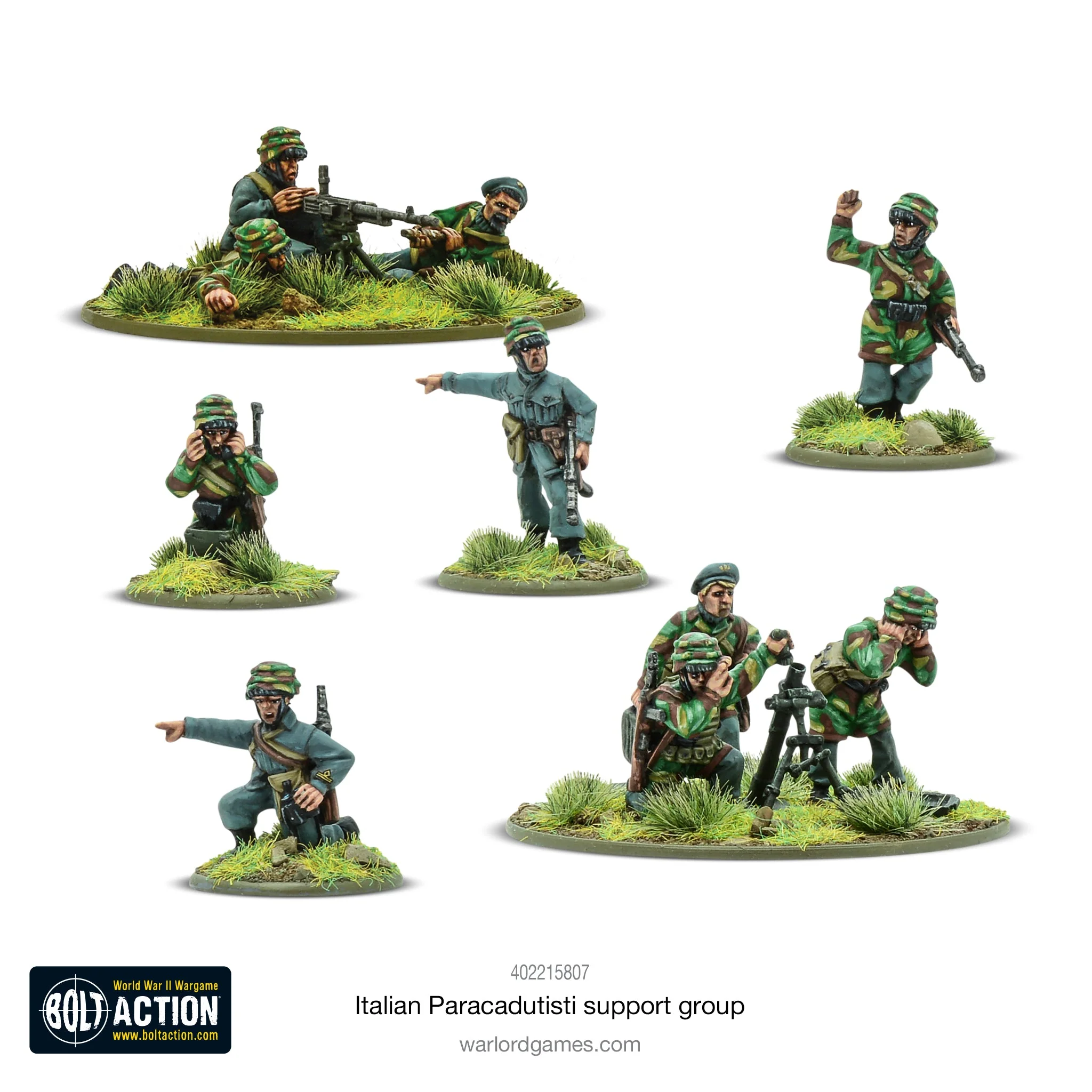 Dowodzeni przez twardych, doświadczonych oficerów, włoscy spadochroniarze byli szanowanym przeciwnikiem – podczas bitwy pod El Alamein oddziały dywizji Folgore (Błyskawica) odpierały brytyjskie ataki przez tygodnie. Folgore walczyli do wyczerpania zapasów amunicji, niszcząc brytyjskie czołgi niemal samobójczymi atakami z bliska i wybierając szarże na bagnety zamiast wywieszania białej flagi – taki był ich zapał.