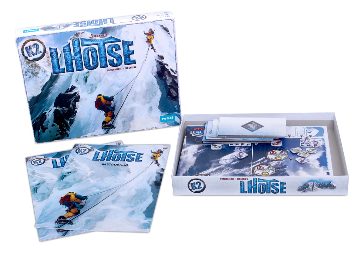 K2: Lhotse to dodatek do podstawowej gry K2, w której zadaniem graczy jest na tyle sprawnie pokierowanie zespołem dwóch himalaistów, by wspięli się jak najbliżej szczytu. W skład dodatku wchodzi alternatywna, dwustronna plansza oraz nowe kafle pogody. Rozszerzenie wprowadza również zupełnie nową mechanikę - żetony liny poręczowej, które pozwalają na ustalanie własnych szlaków.