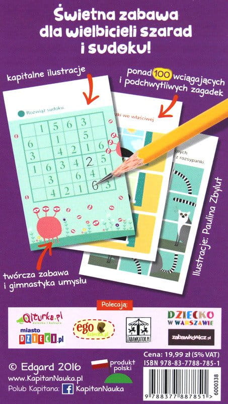 Ponad 100 wciągających, podchwytliwych zagadek i łamigłówek! Ćwiczą spostrzegawczość, umiejętność skupienia uwagi i myślenie logiczne, a przede wszystkim gwarantują świetną, twórczą zabawę.
