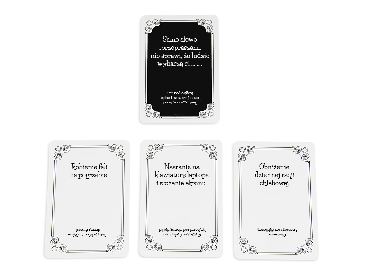 - 4 puste Czarne Karty i 5 pustych Białych Kart na Twoje pomysły
