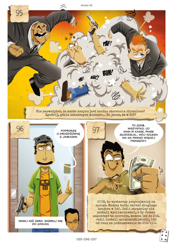Dlaczego komiksy paragrafowe są tak wciągające, pełne emocji i bez reszty angażują gracza? Ponieważ istnieje wiele sposobów na zakończenie rozgrywki, a czasem również wiele zakończeń komiksu. Wszystko zależy wyborów, jakich dokonuje gracz, co sprawia, że komiksy paragrafowe można czytać wiele razy, z rosnącą ciekawością.