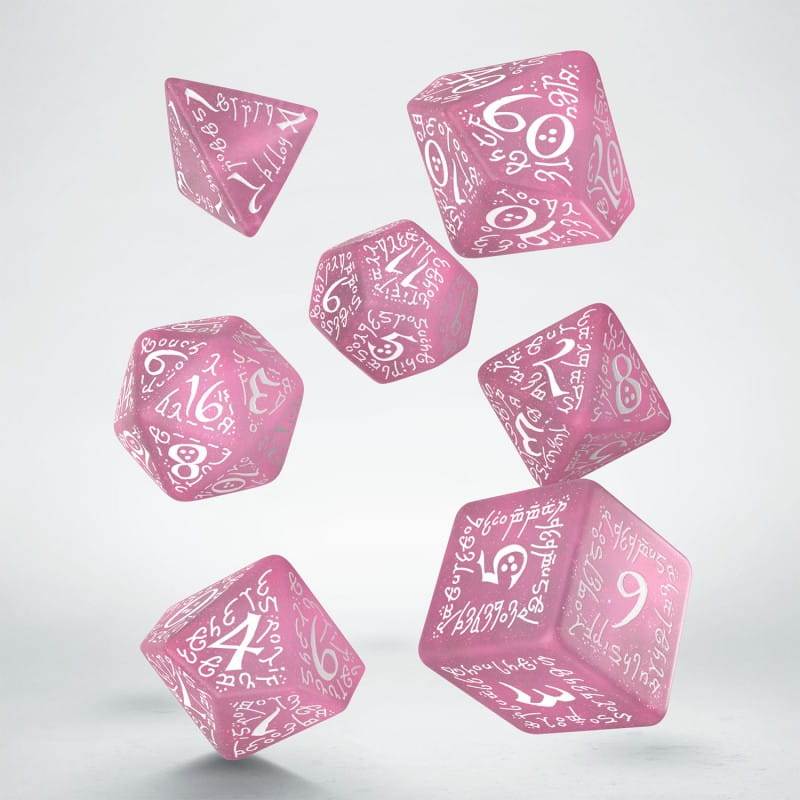 Kości RPG Elfickie Błyszcące Różowo-białe (7)