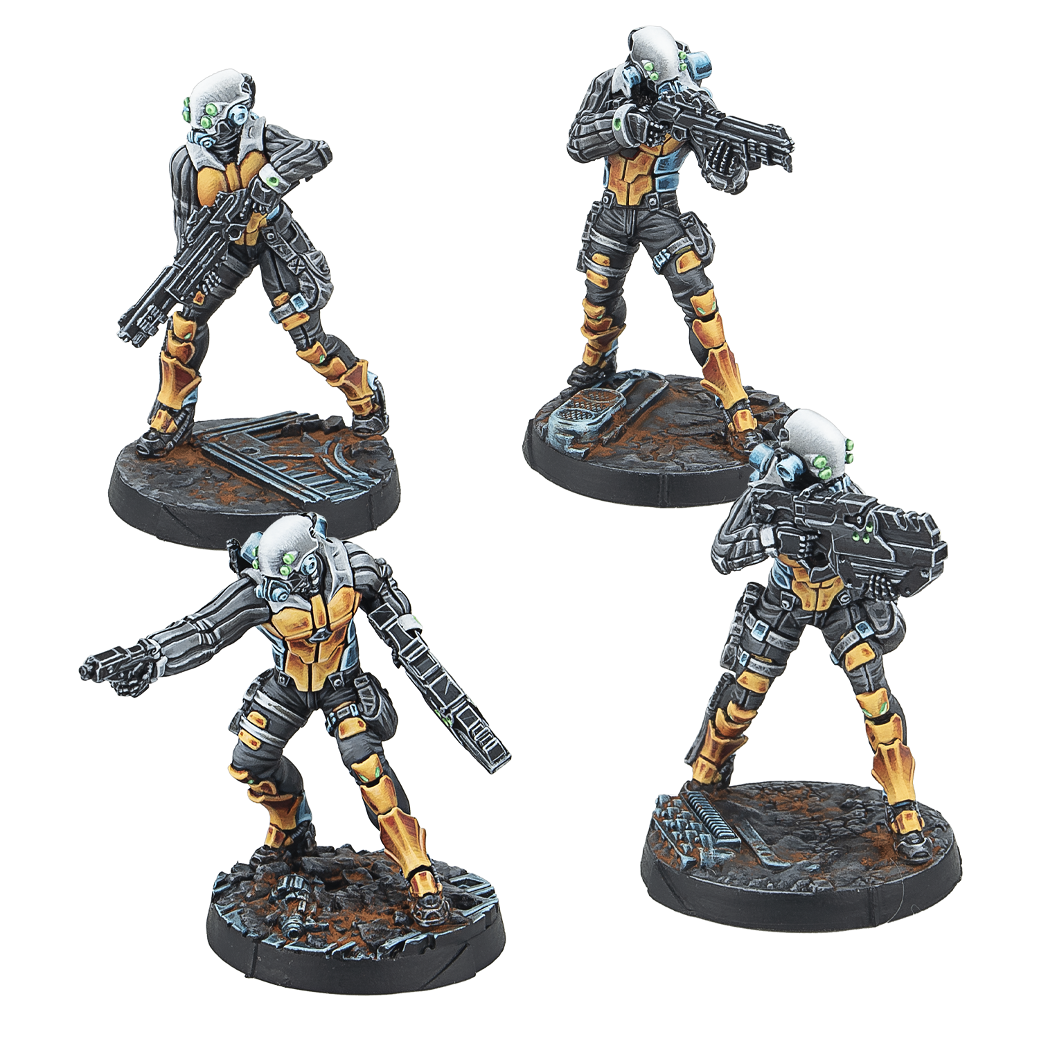 W zestawie znajdują się cztery metalowe figurki: dwie Kuang Shi z karabinami łańcuchowymi i dwie Kuang Shi ze strzelbami abordażowymi. Nowy projekt i nowe rzeźbienie dla starego klasyka z List Armii Yu Jing. To pudełko stanowi idealne uzupełnienie Zestawu Akcji Służby Cesarskiej (REF: 281348-1140) i pozwala graczom stworzyć drużynę ogniową Kuang Shi.