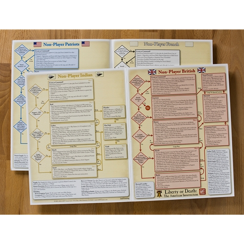 As with earlier COIN Series volumes, players of Liberty or Death: The American Insurrection will face difficult strategic decisions with each card. The innovative game system smoothly integrates political, cultural, and economic affairs with military and other violent and non-violent Commands and capabilities. Rabble-rousing, Indian Raids, Persuasion, Naval Pressure, Letter of Marque, Looting, Trading, Skirmishing, and Foraging and more options are available. Flow charts are at hand to run any faction short a player—solitaire, 2-player, 3-player, or 4-player experiences are equally supported.