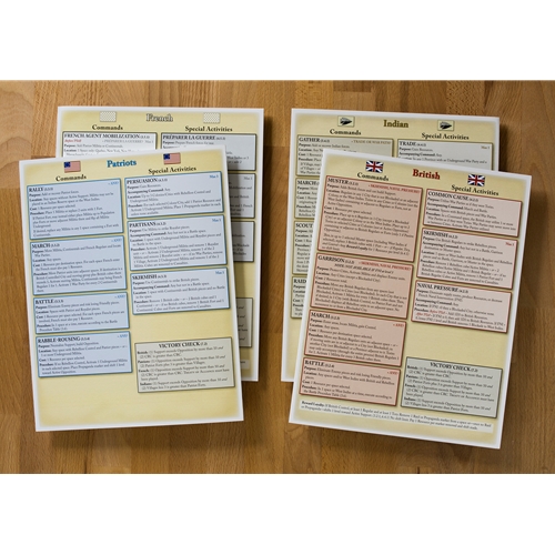 As the Indian player, you have selected the lesser of two evils in aligning with the British. You will work with them to lower Opposition using Raids but you will be developing your footprint by Gathering forces and building villages. The British can help you to protect them from the Patriots and in return you can assist the British in controlling the region. War Chief Joseph Brant and later War Chief Cornplanter give you the ability to mount a decisive attack with your War Parties but will it be worth exposing your villages to Patriot attack?