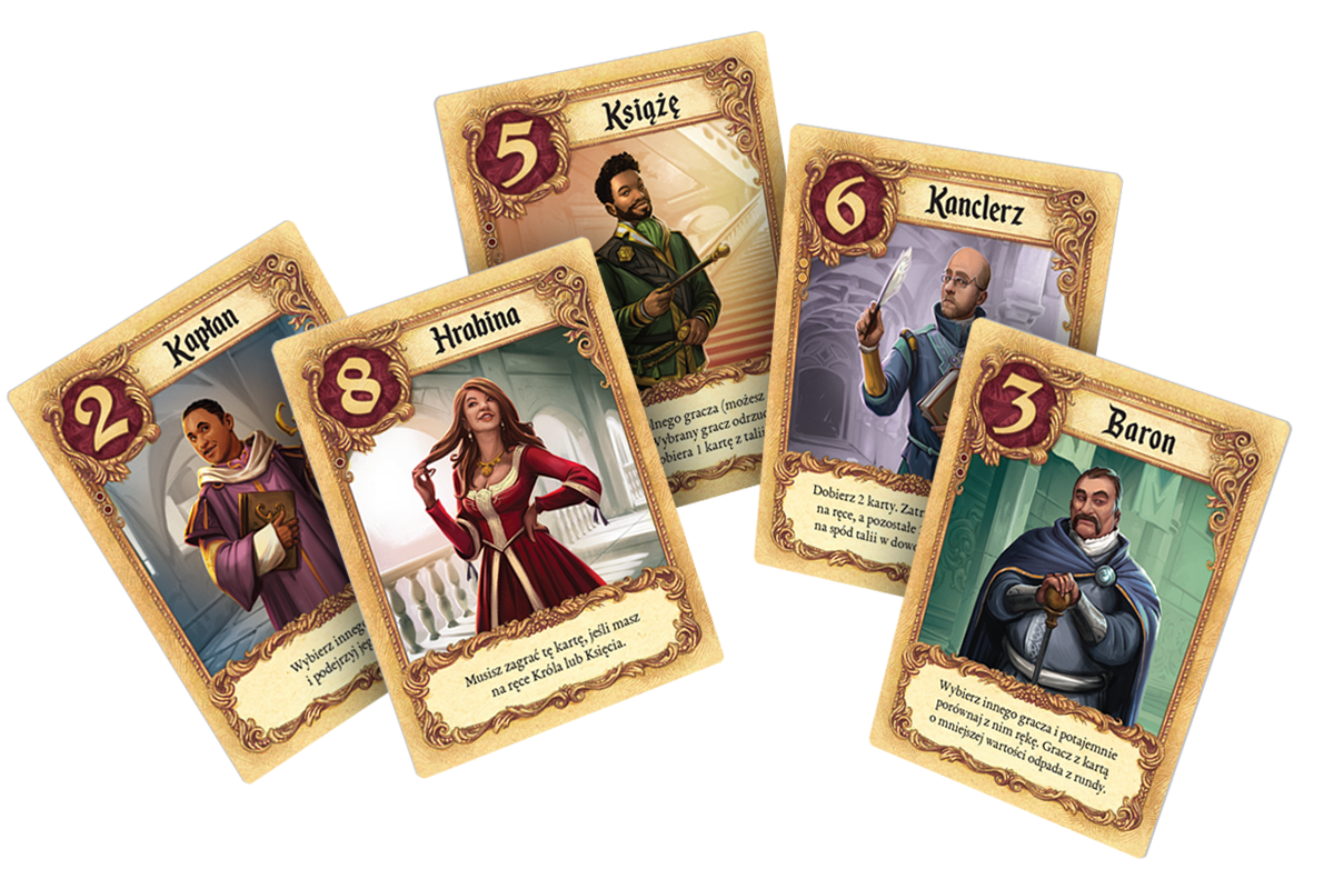 - Każda z postaci ma swój unikalny efekt działania: niektóre pozwalają podglądać karty na rękach przeciwników, zamieniać je miejscami lub eliminować graczy. Karty o wyższej wartości oferują potężniejsze efekty, ale z drugiej strony przybliżają nas do zwycięstwa – aby wygrać, musimy więc podejmować przemyślane ryzyko.