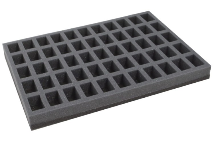 - 5 pianek z 55 przegródkami każda, przystosowanych do modeli na podstawkach 25 mm, wielkość przegródek 42mm x 25 mm x 25 mm;