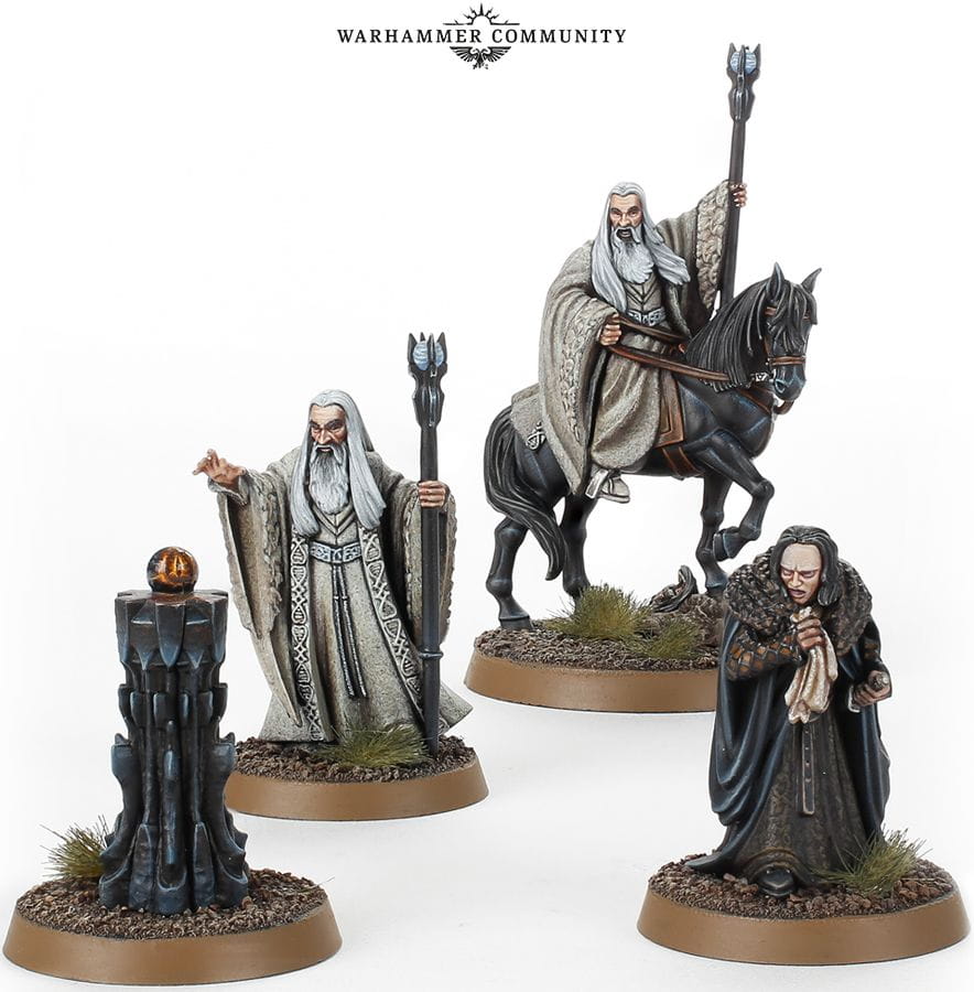 Zestaw zawiera 4 plastikowe miniatury – Sarumana na piechotę i na koniu, Gríma Wormtongue i Palantír na cokole. Modele są dostarczane z jedną okrągłą podstawą Citadel 40 mm i trzema okrągłymi podstawami Citadel 25 mm.