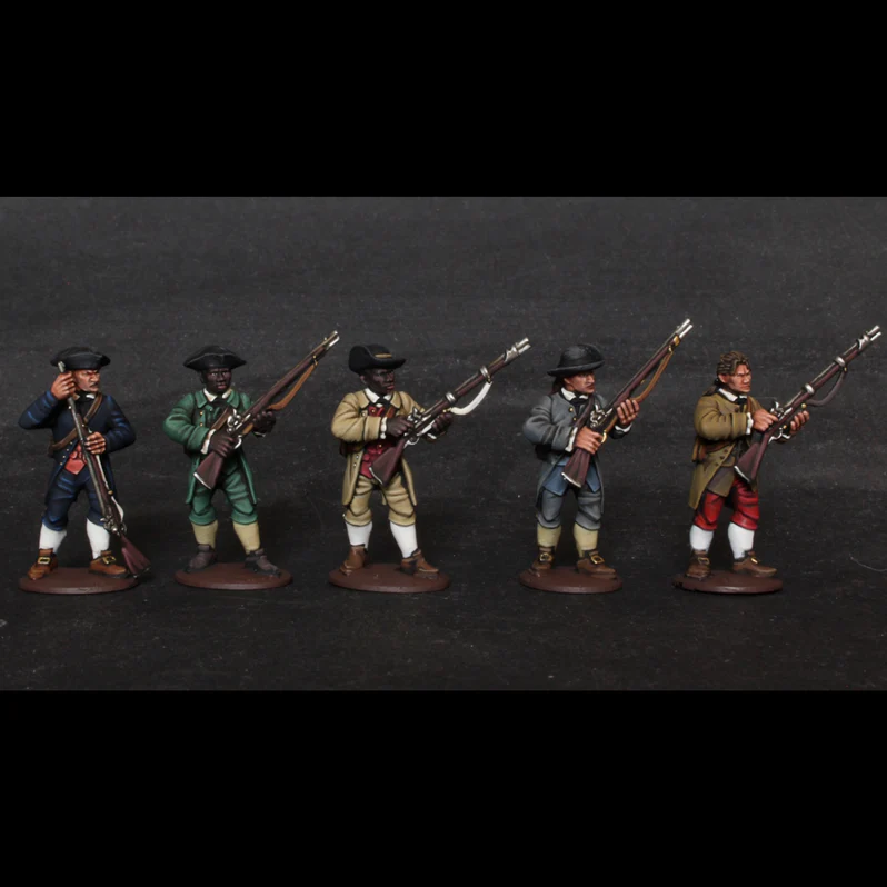 Zestaw ten zawiera wystarczającą liczbę części, aby zbudować 30 karabinów Minuteman w skali 28 mm. Różne rodzaje muszkietów odzwierciedlają różnorodność uzbrojenia milicji, a różnorodne głowice reprezentują wiele typów żołnierzy, którzy brali udział w tych bitwach.