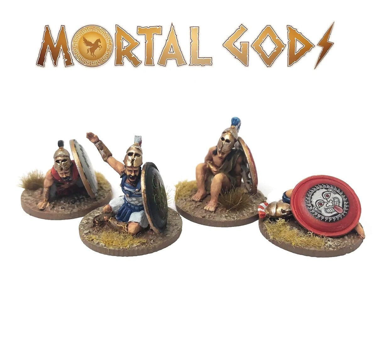 With conflict comes casualties, and these unfortunates lie injured in the service of their lochagos. Designed to be used to replace hoplite miniatures representing casualties on a multi-base during games of Mortal Gods.