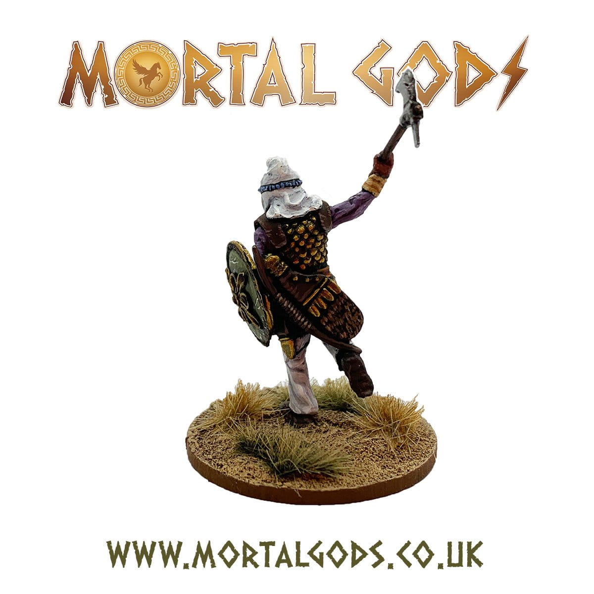 Pack contains one Mortal Gods Miniature. Made from white metal and is supplied with a 32mm round MDF base. May require assembly.