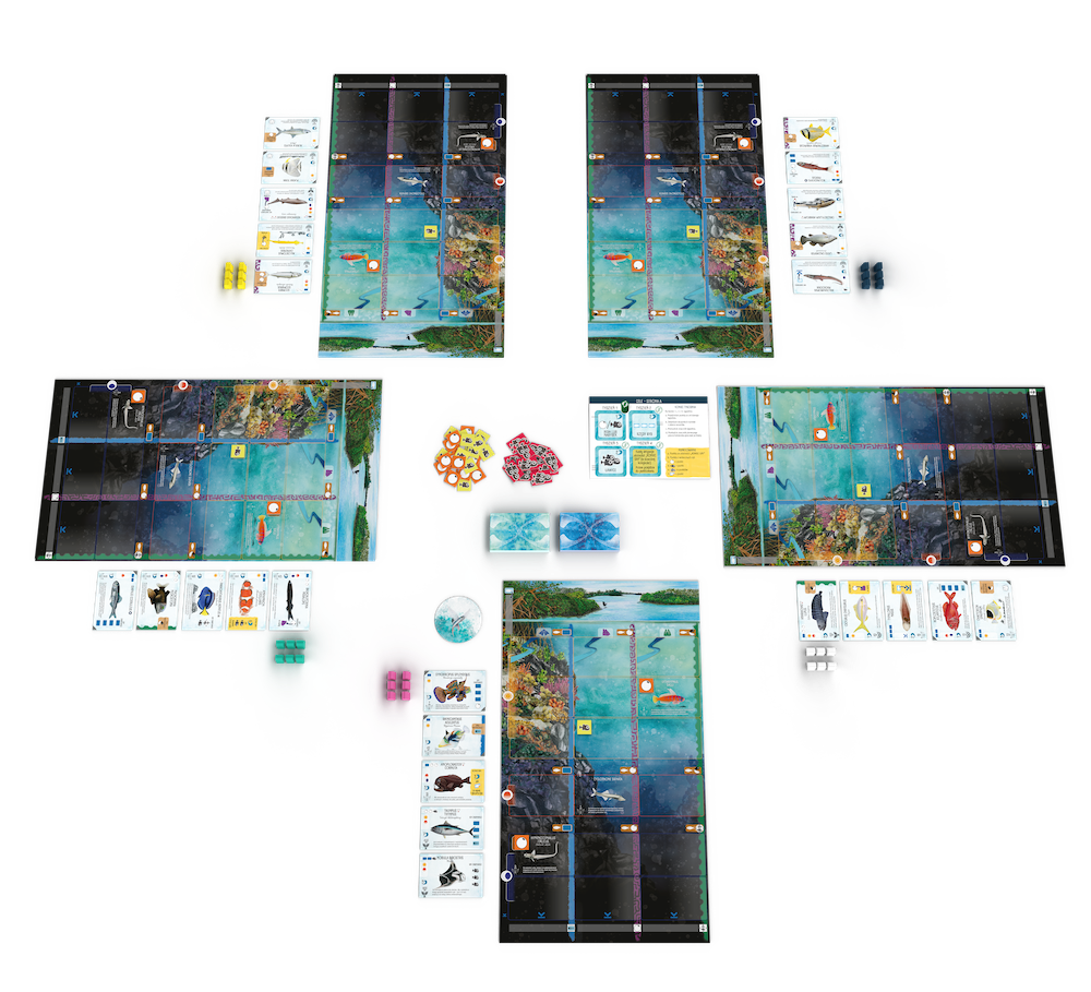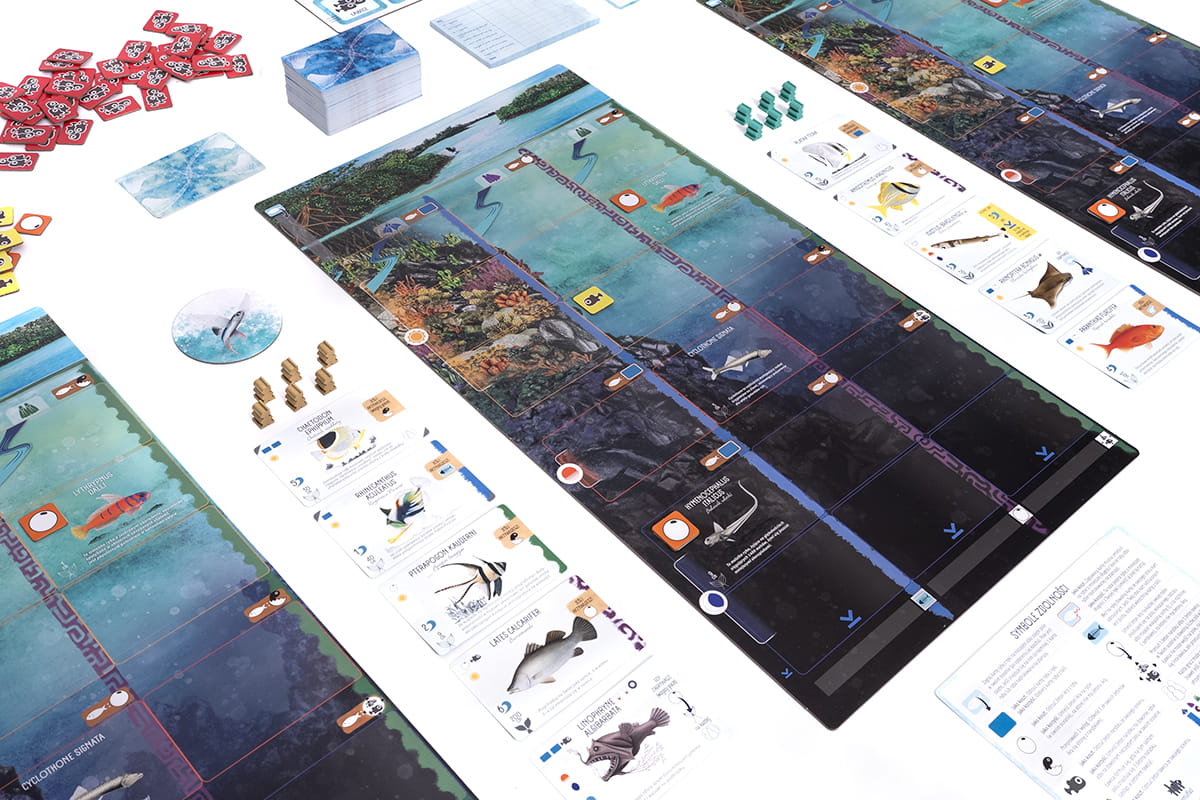 - W swojej turze masz do wyboru dwie czynności: zagrasz kartę ryby do swojego oceanu (opłacając jej koszt) albo zanurkujesz w odpowiednim sektorze, aby otrzymać różne korzyści.
