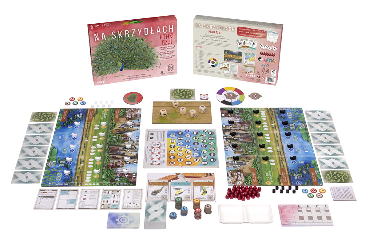 Dodatek Ptaki Azji to 90 zupełnie nowych kart ptaków i 14 kart bonusowych, które możesz wykorzystać w dowolnej rozgrywce. Oprócz nich, w pudełku znajdziesz też 2 inne, niezależne od siebie rozszerzenia, które pozwolą na nowo odkryć świat ptasich rezerwatów. Tryb duetu zapewni specjalne zasady dla rozgrywek dwuosobowych, mechanizm Automy umożliwi rozgrywki solo, a tryb stada pozwoli zaprosić do stołu 6. i 7. gracza.