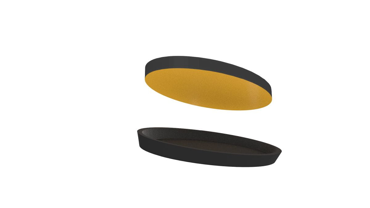 Rozmiar naklejki został dobrany tak, aby wypełniać możliwie cały wklęsły spód podstawki. Dodatkowo naklejka wystaje ponad rant podstawki o około 0,2mm.
