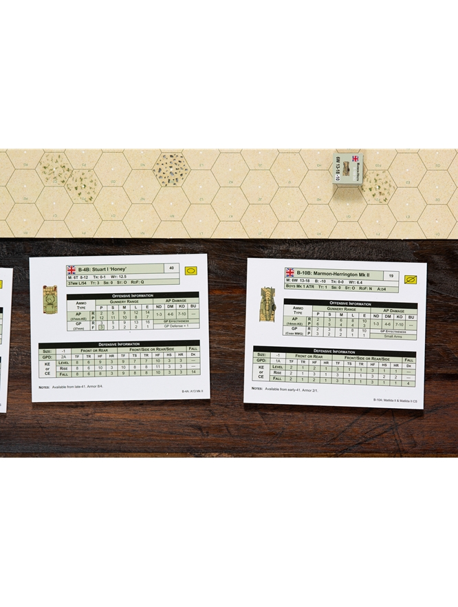 - Vehicles, towed guns, and aircraft are scaled at 1:1 with each 7/8” double-sided counter representing a single unit.