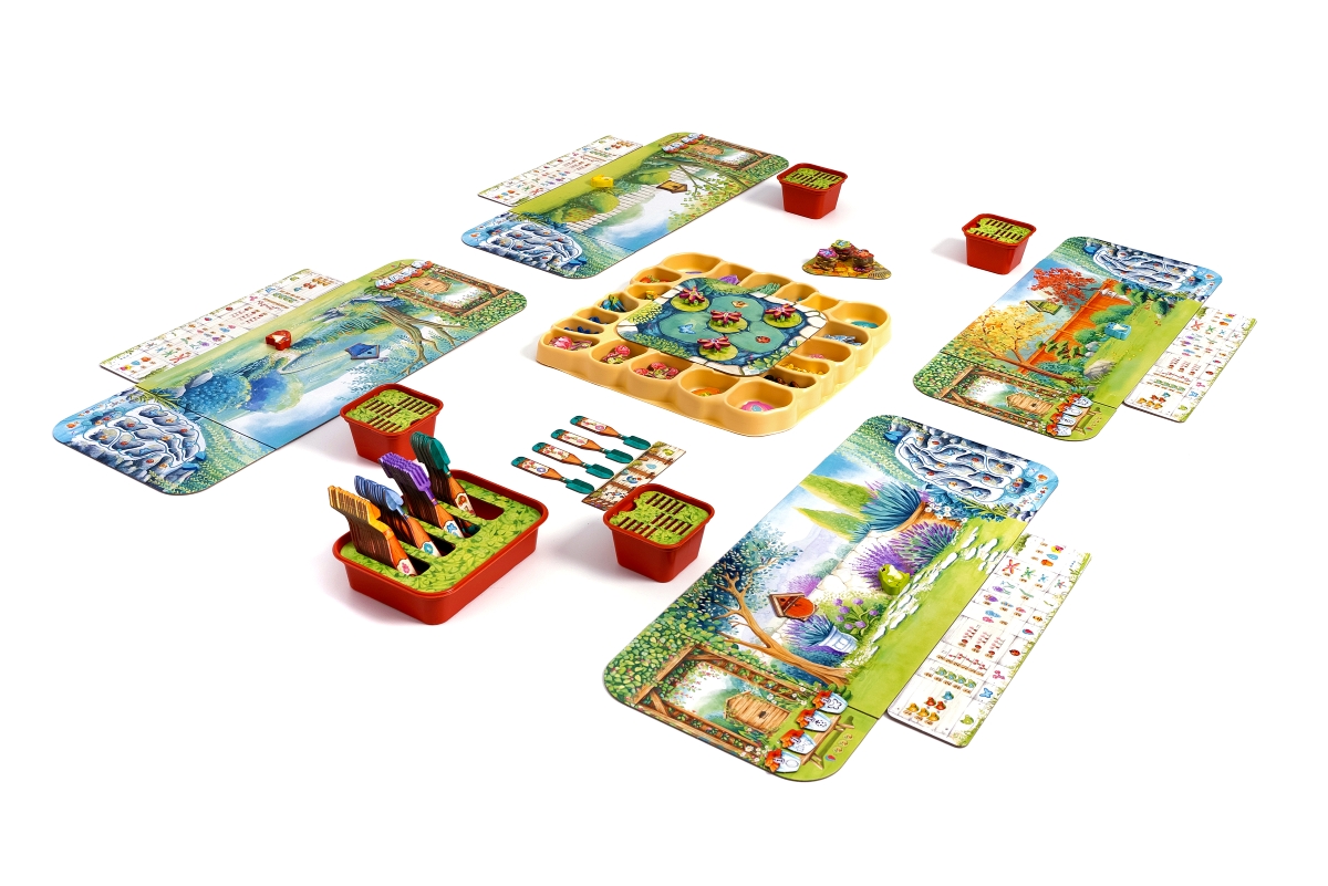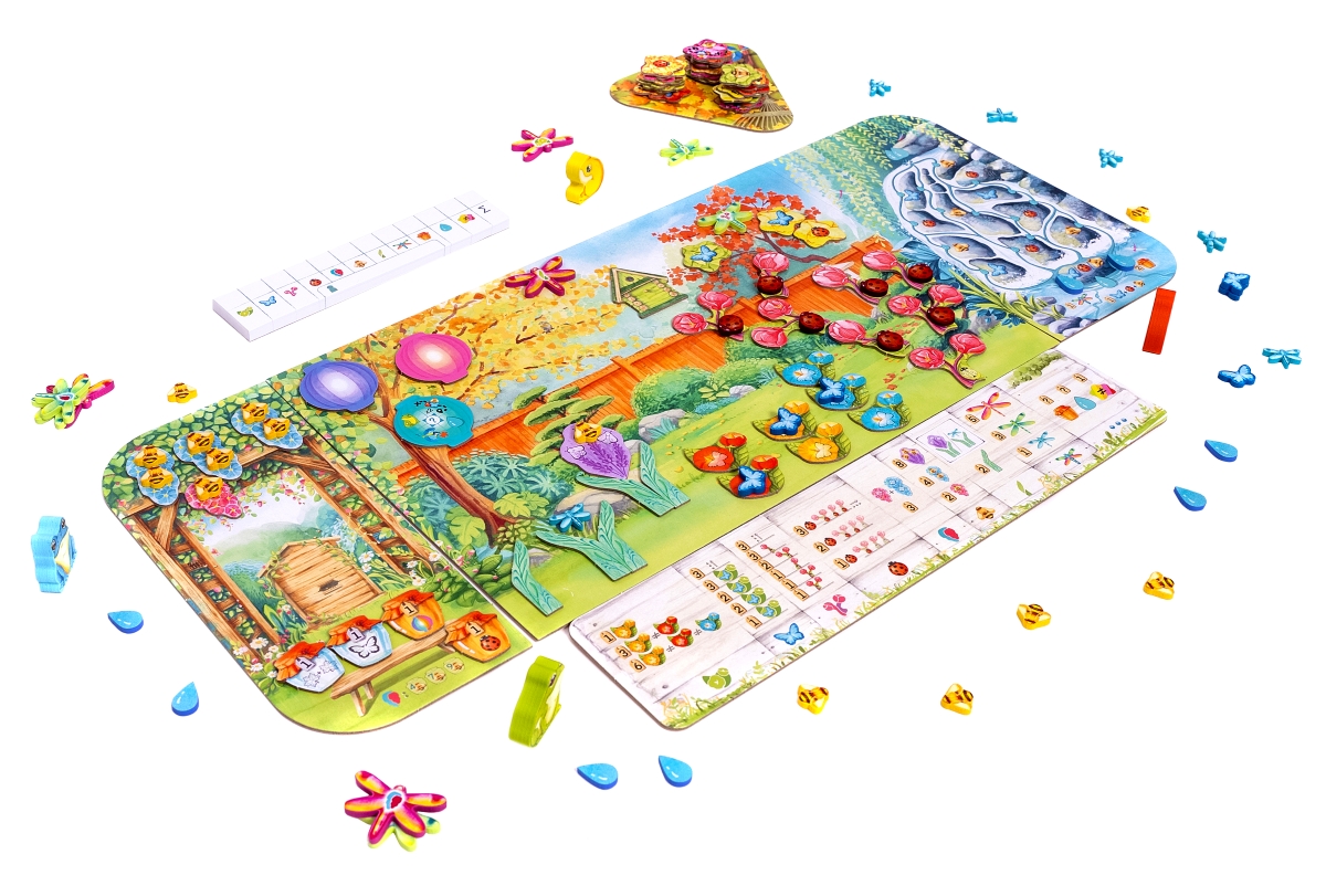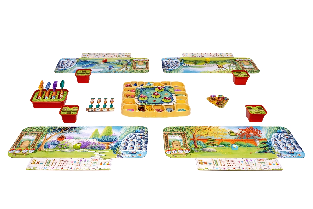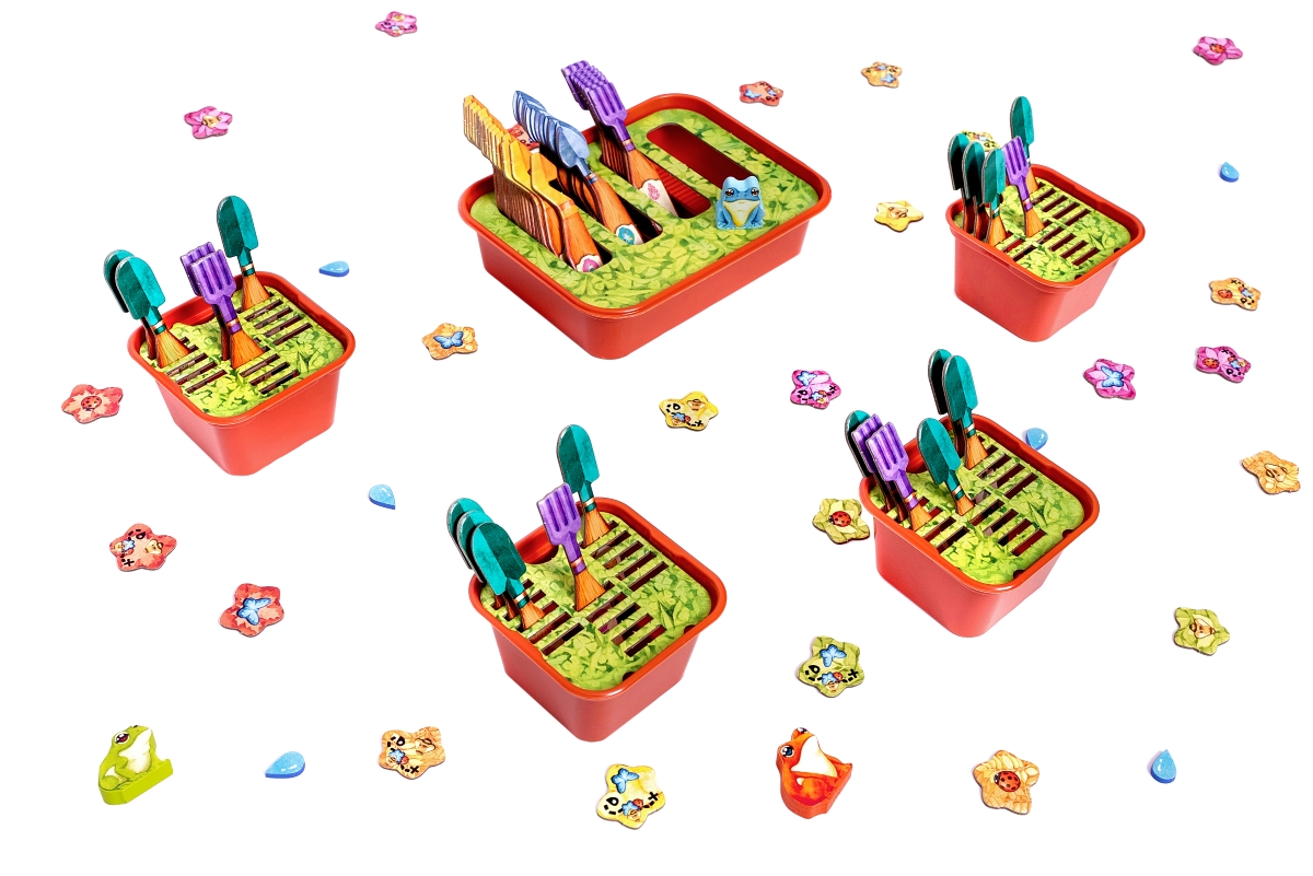 - Każdy z graczy zaczyna z własną planszą ogrodu – różnią się one stylem i kolorystyką, jednak oferują takie same możliwości początkowe. Oprócz tego otrzymujemy też po jednej pergoli i kaskadzie, które także stanowią obszar gry.