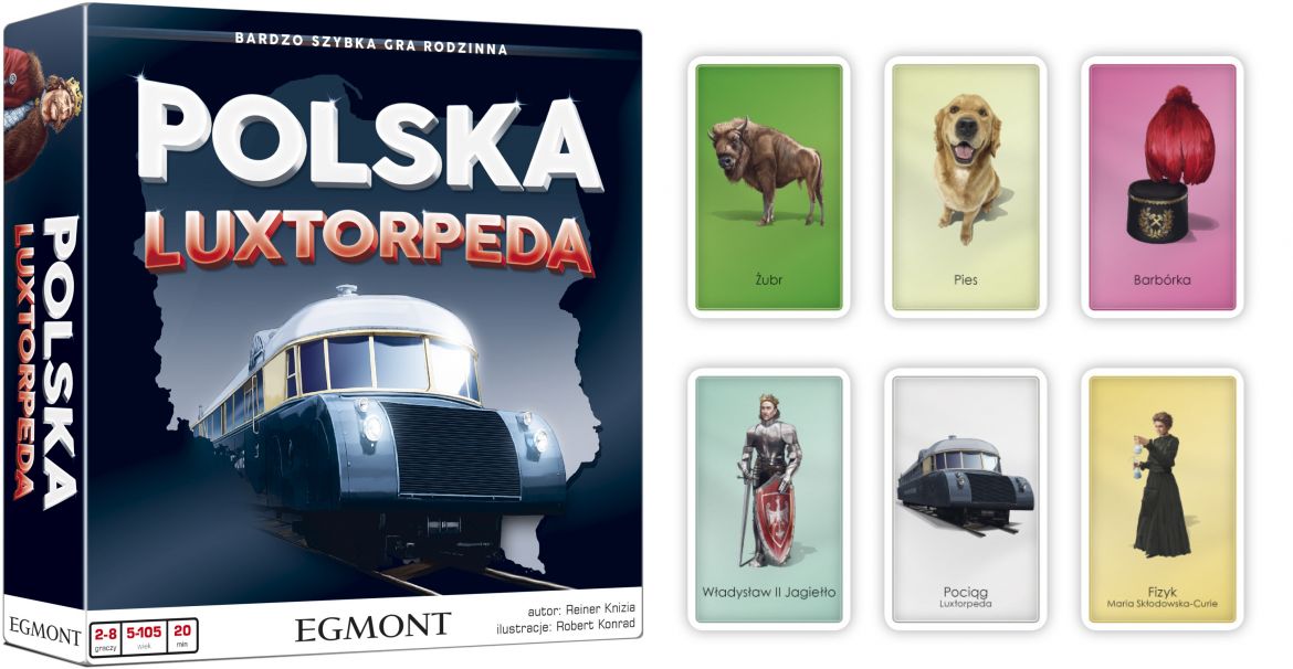 Polska Luxtorpeda to gra imprezowa, przy której świetnie będą się bawić młodsi i starsi. Dynamiczna rozgrywka spodoba się fanom gier typu Dobble czy Jungle Speed. W grze występują różne postaci i obiekty związane z polską kulturą i historią.