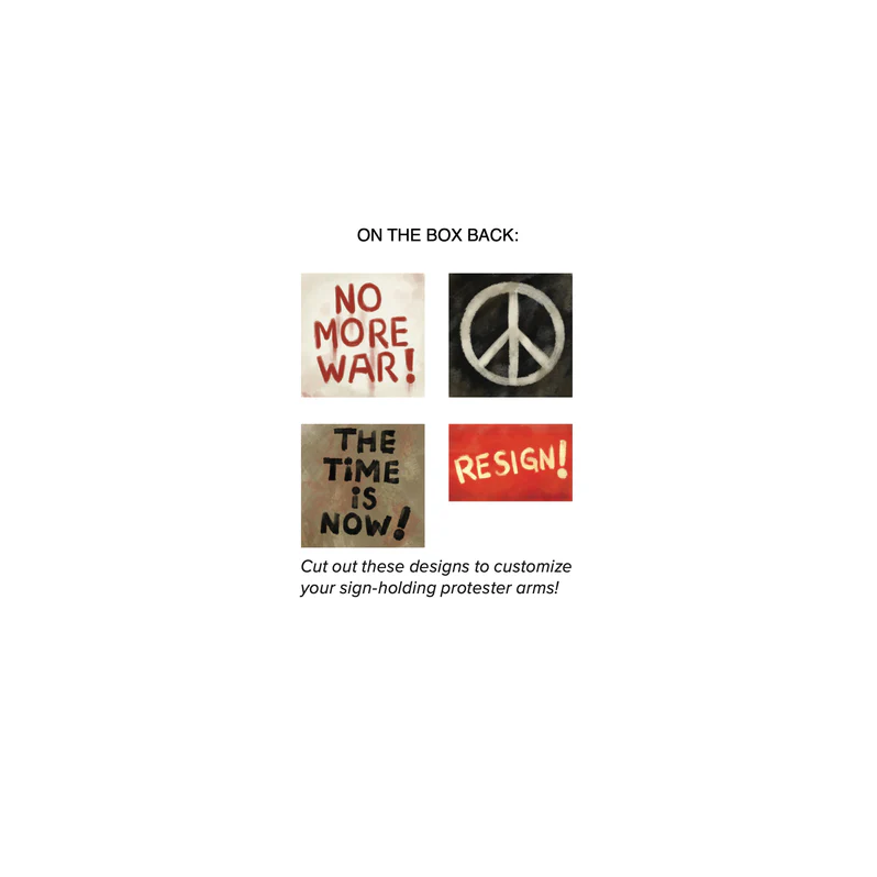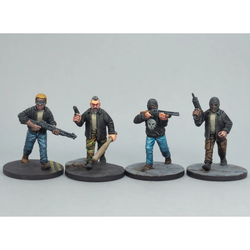 Zestaw zawiera wystarczającą ilość części, aby zbudować 24 figurki w skali 28 mm. Jest sześć unikalnych ciał, wystarczająco dużo ramion, aby wszystkie mogły uciekać, wystarczająco dużo ramion, aby połowa pudełka trzymała transparenty, oraz ogromny wybór broni. Wśród broni znajdują się: rozbite butelki, kije baseballowe, kije do krykieta, maczety, dwulufowe strzelby, półautomatyczne strzelby, strzelby pompowe, karabiny AR-15, pistolety i rewolwery automatyczne, Uzi oraz karabiny myśliwskie/snajperskie. A na dodatek w pudełku znajduje się 55 unikalnych głów, łącznie 220 głów!