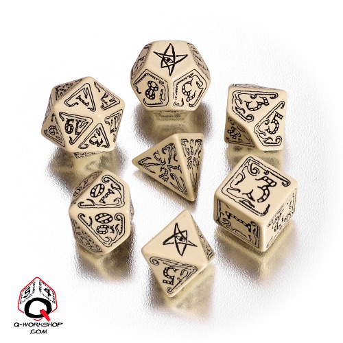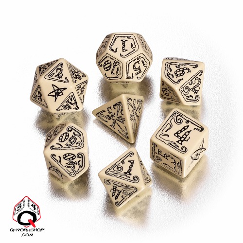 Te kostki wykorzystują jeden z naszych najnowszych kolorów – beżowy, i dzięki niemu wyglądają zupełnie jak antyczne zwoje z tajemniczymi zapisami… Być może ukryta w nich jest jakaś sekretna wiedza ? Czy będziesz miał dość odwagi, aby po nią sięgnąć ? Ale pamiętaj, Bezimienne Istoty czekają na Twój najmniejszy bład…