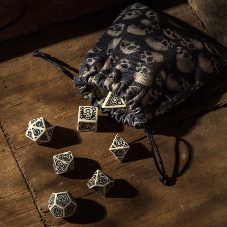 Wszystkim wydaje się, że sakiewka to tylko sakiewka - woreczek ze sznurkiem, który służy temu, żeby kości nie latały luzem w torbie lub plecaku. Tylko, że ten niby zwykły przedmiot, to jednak podstawowa osłona naszych umiłowanych zestawów, tych wszystkich szczęśliwych wielościennych kości, które pomagają grającym pokonać smoka, rzucić kulę ognistą, zauroczyć złego trolla, uśpić mantikorę i wskrzesić legion szkieletów, by zrobiły wrogom jesień średniowiecza. Taki woreczek musi być wytrzymały, ładny i pasujący do klimatu postaci. My w Q WORKSHOP ogarnęliśmy więc nową technologię i mamy woreczki z pełnym nadrukiem z doskonałej tkaniny, która wytrzyma lata. Sznurek został zrobiony z syntetycznej sieci pajęczej (szanujemy arachnofobię u graczy i nie chcemy dręczyć ginących gatunków wielkich pająków w stylu Szeloby). To wszystko dlatego, że robimy te sakiewki z myślą o waszych kościach, które szanujemy jak własne, a, jak wiecie, kości są naszą pasją.