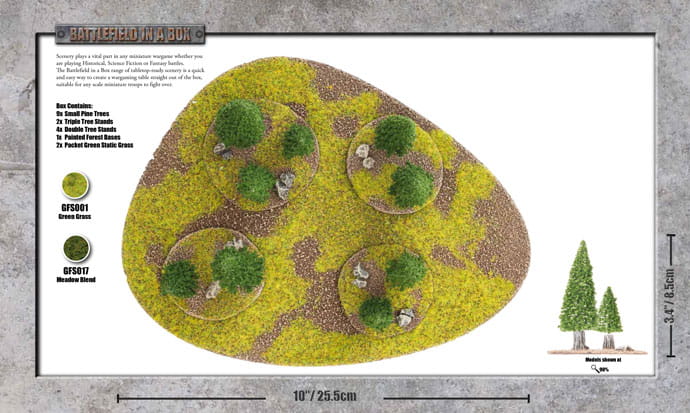 Sceneria odgrywa istotną rolę w każdej miniaturowej grze wojennej, niezależnie od tego, czy grasz w bitwy historyczne, science fiction czy fantasy. Seria Battlefield in a Box z gotową scenografią to szybki i łatwy sposób na stworzenie stołu do gier wojennych od razu po wyjęciu z pudełka, odpowiedniego dla miniaturowych oddziałów dowolnej skali.